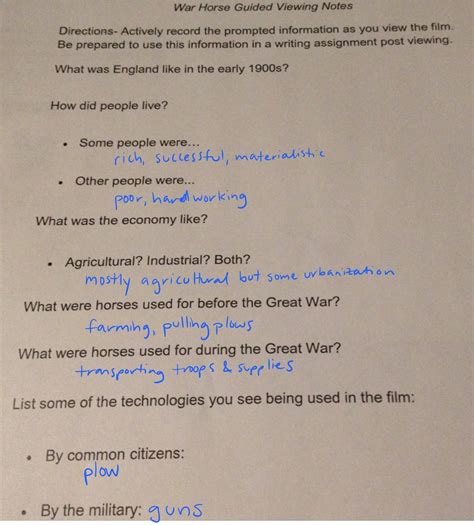 Read Online war horse guided viewing notes answers PDF online is a convenient and frugal way to read war horse guided viewing notes answers you love right from the comfort of your own home. Yes, there sites where you can get PDF "for free" but the ones listed below are clean from viruses and completely legal to use.